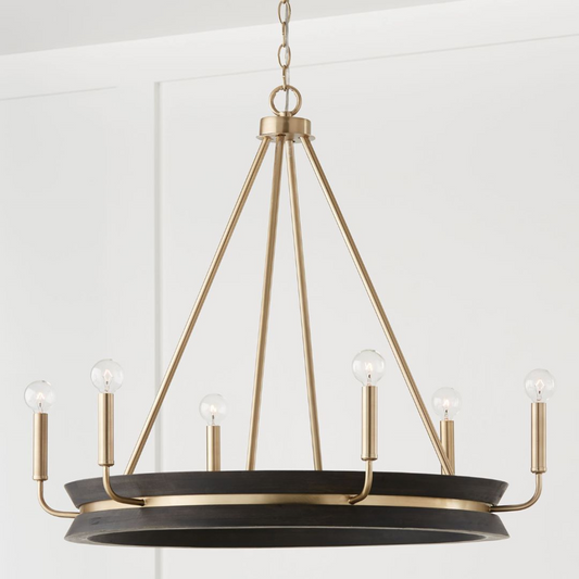 Chandelier / Lámpara Colgante En Madera Importada & Acabados Dorados