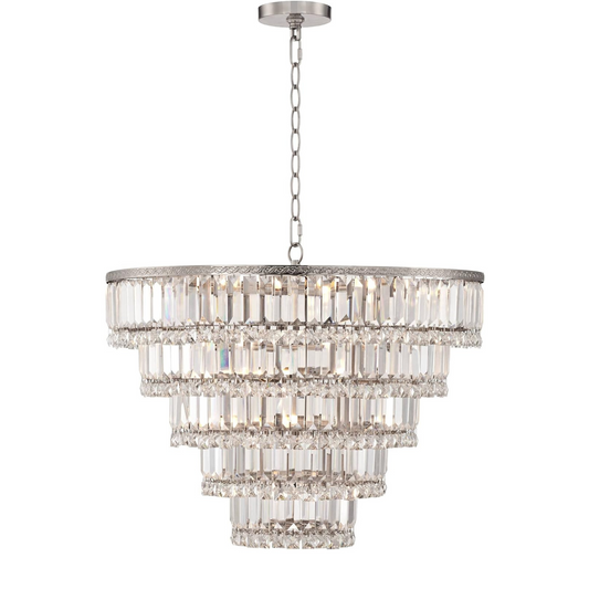 Chandelier / Lámpara Colgante En Níquel Satinado & Cristal
