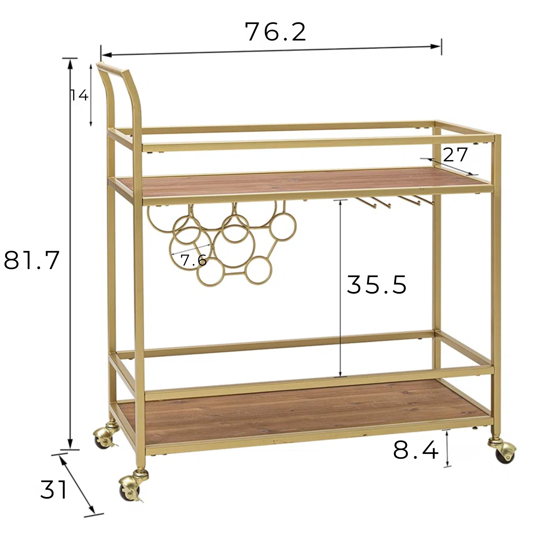 - 82 cm (alto) x 76 cm (ancho) x 31 cm (profundidad)