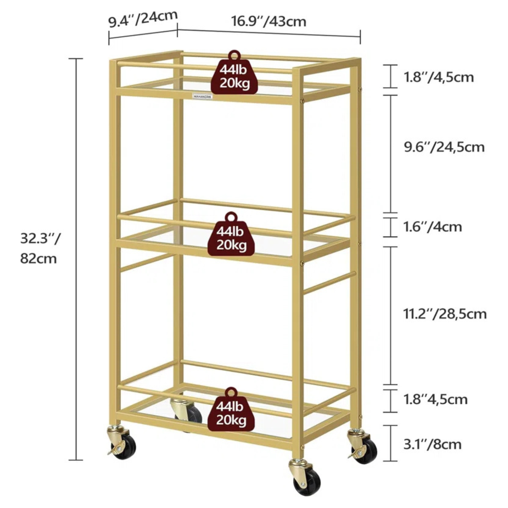 - Ideal como carrito de servicio, mini bar, mesa auxiliar o carrito de snacks
